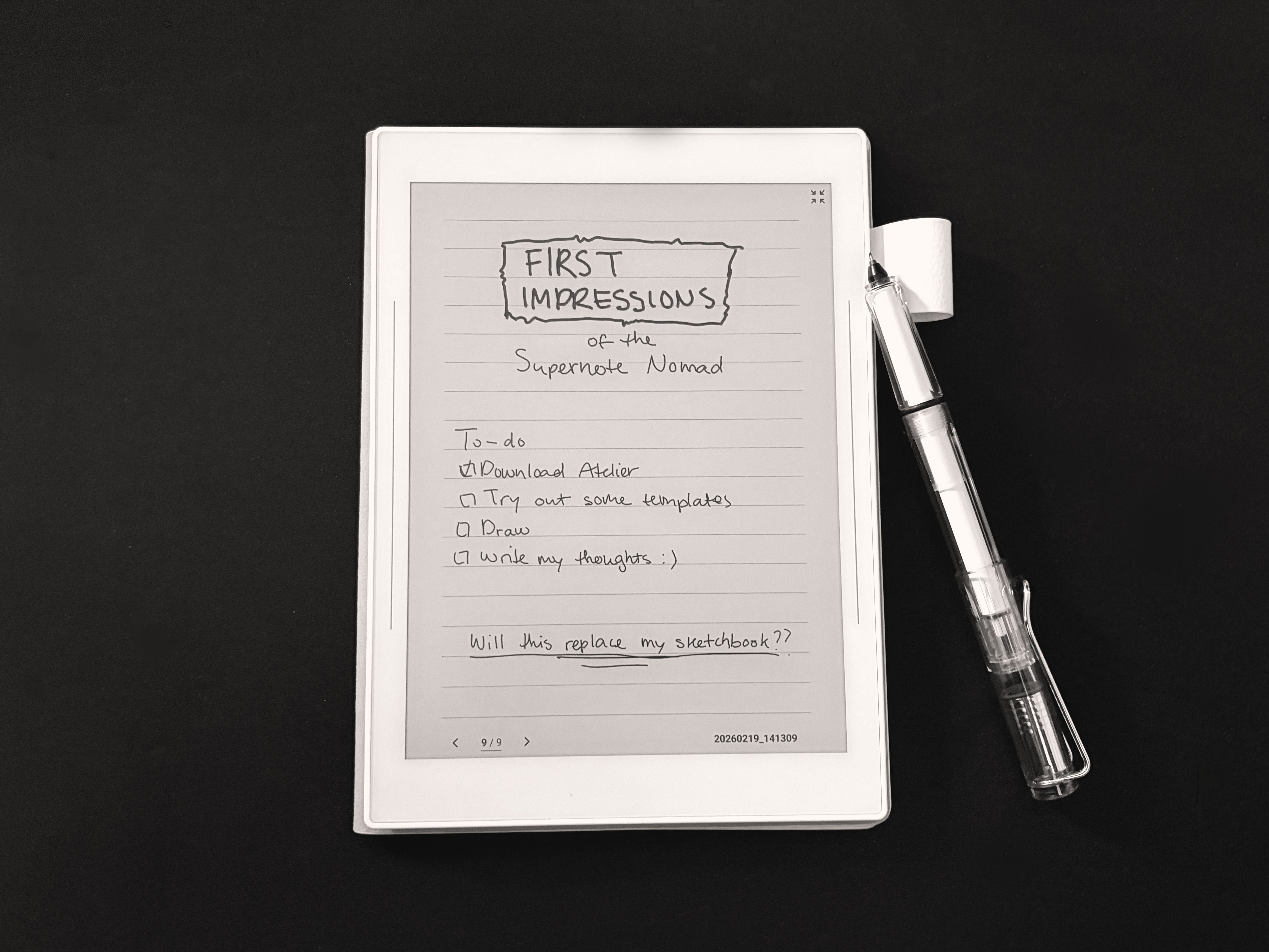After doing some intensive research I kept coming back to the Supernote. There were a few other contenders, like the Boox, which had color as well. But it was really enticing that the Supernote had an entire app dedicated to drawing. Ultimately, that sold me (amongst watching a few reviews). I wasn't only planning to use the tablet for drawing— the iPad is ultimately better for that. But writing was also a big aspect. I wanted to do both, and so I bought the thing. Specifically the Nomad, because portability is a factor too.