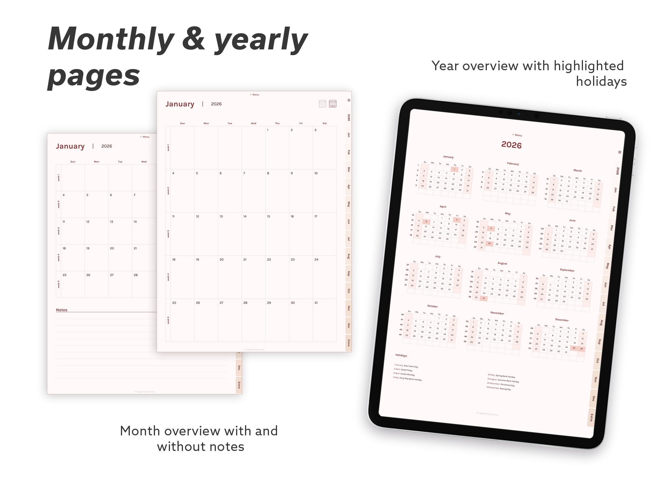 A clean, minimalist 2026 digital planner designed to help you plan with clarity – without the clutter.