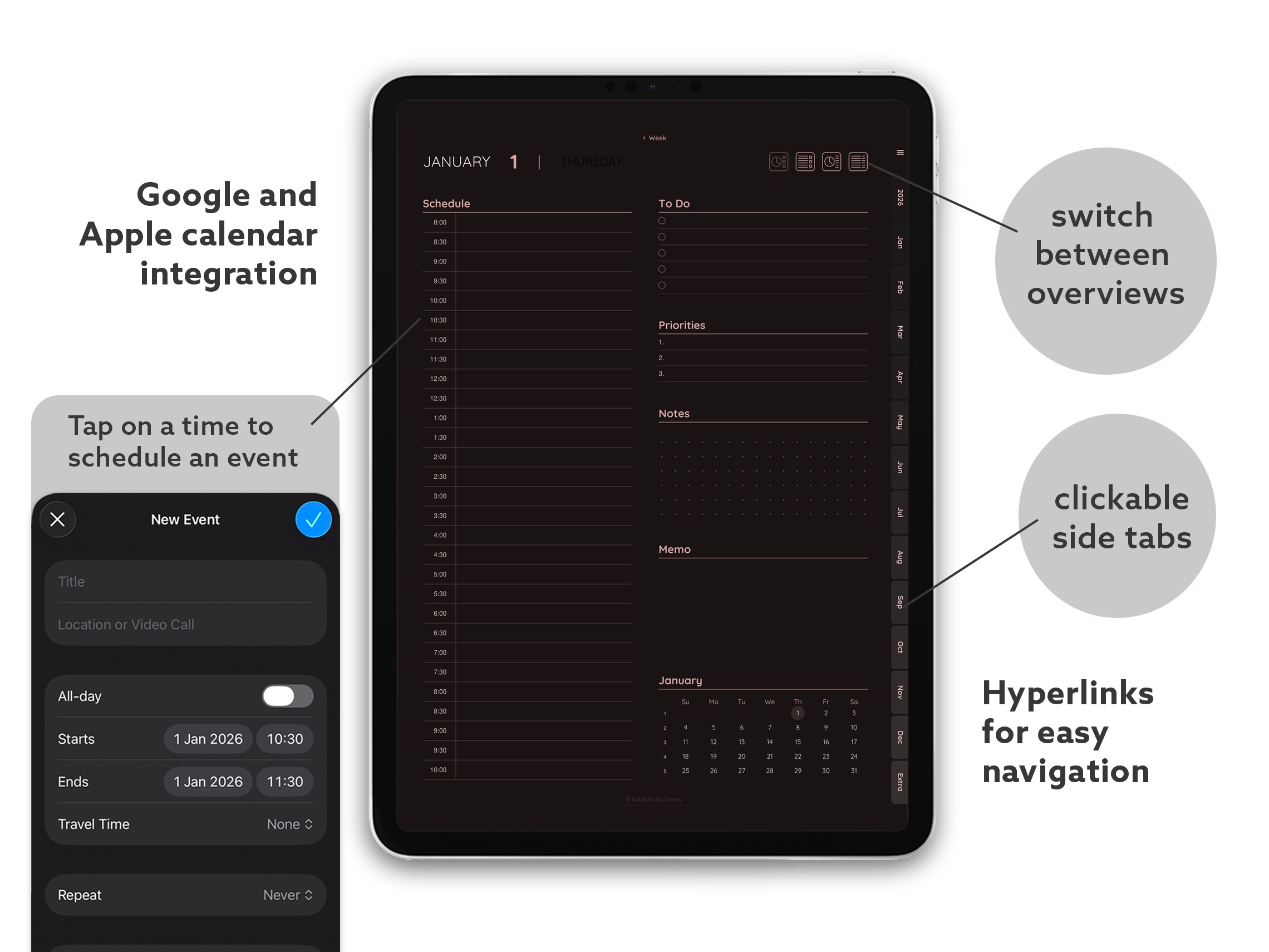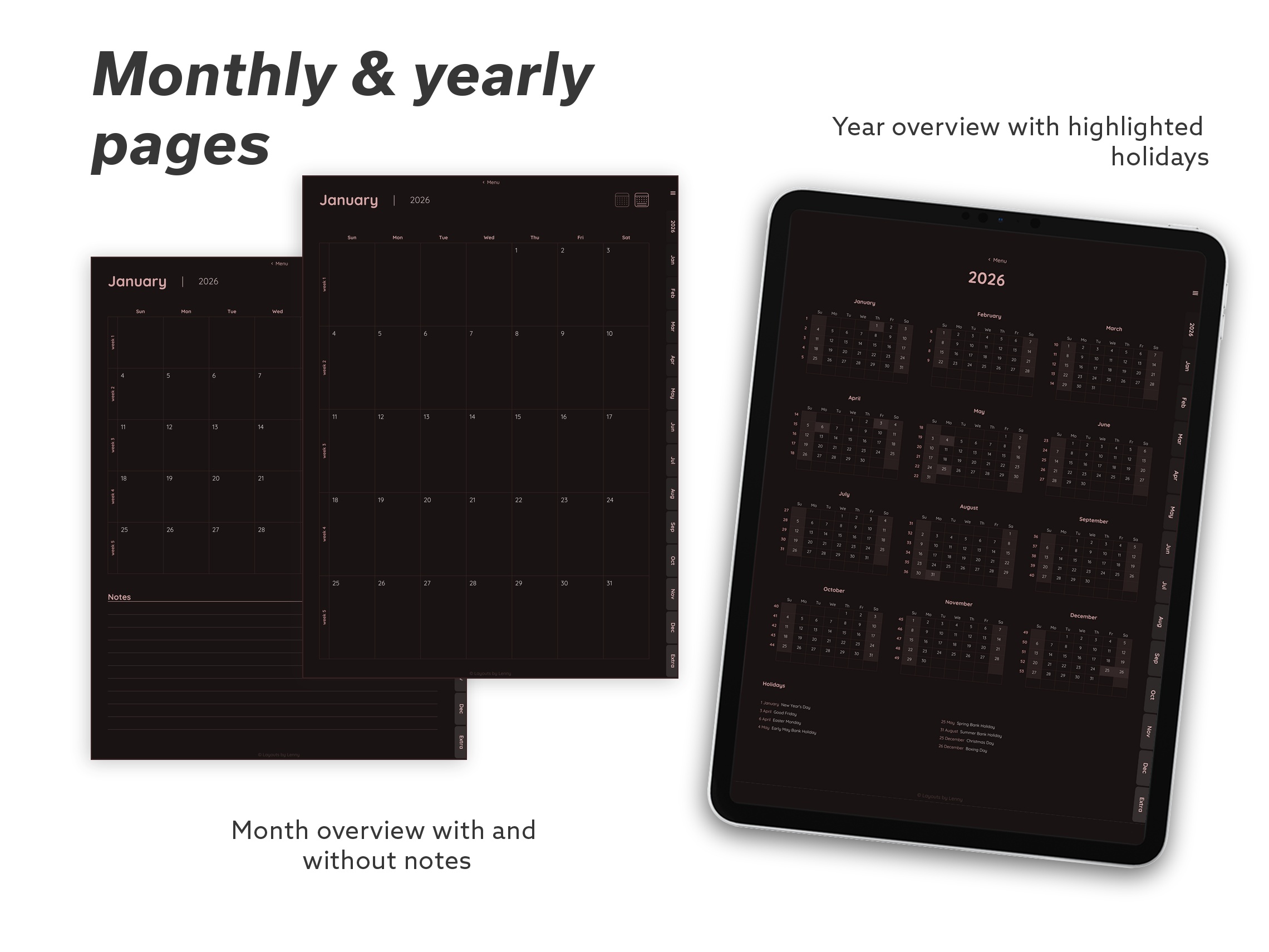 2026 Digital Planner for iPad - Minimalist Dark Essential