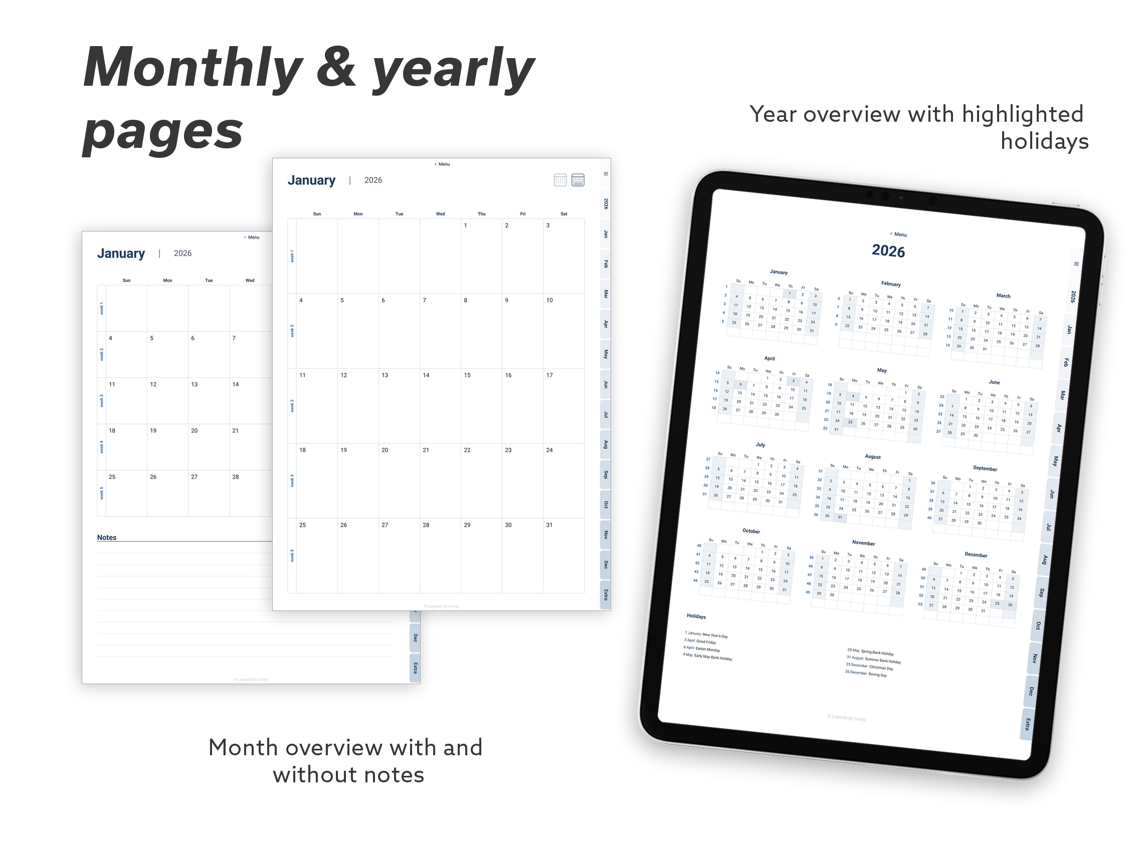 A clean, minimalist 2026 digital planner designed to help you plan with clarity – without the clutter.