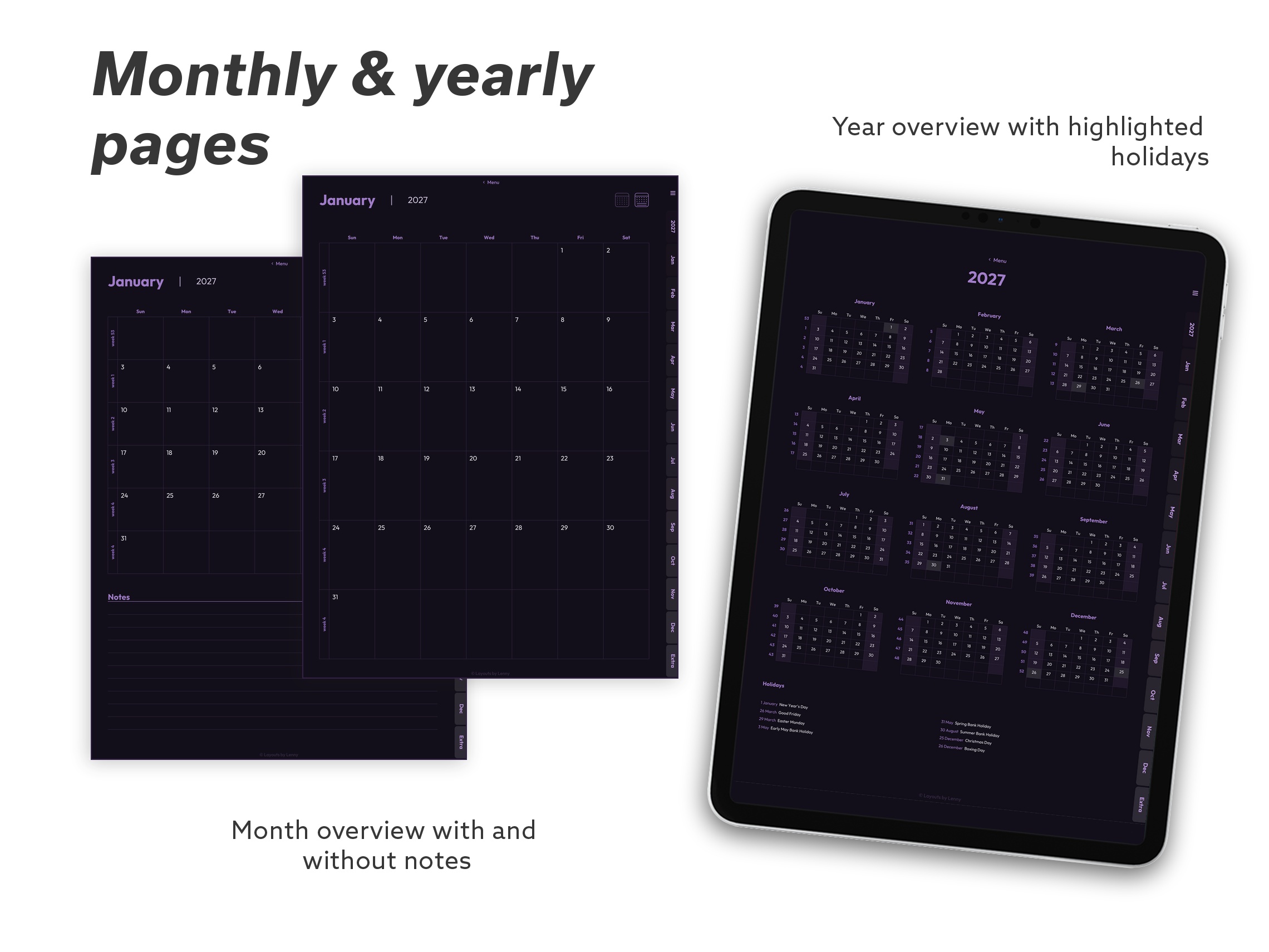 2027 Digital Planner for iPad - Minimalist Dark Purple