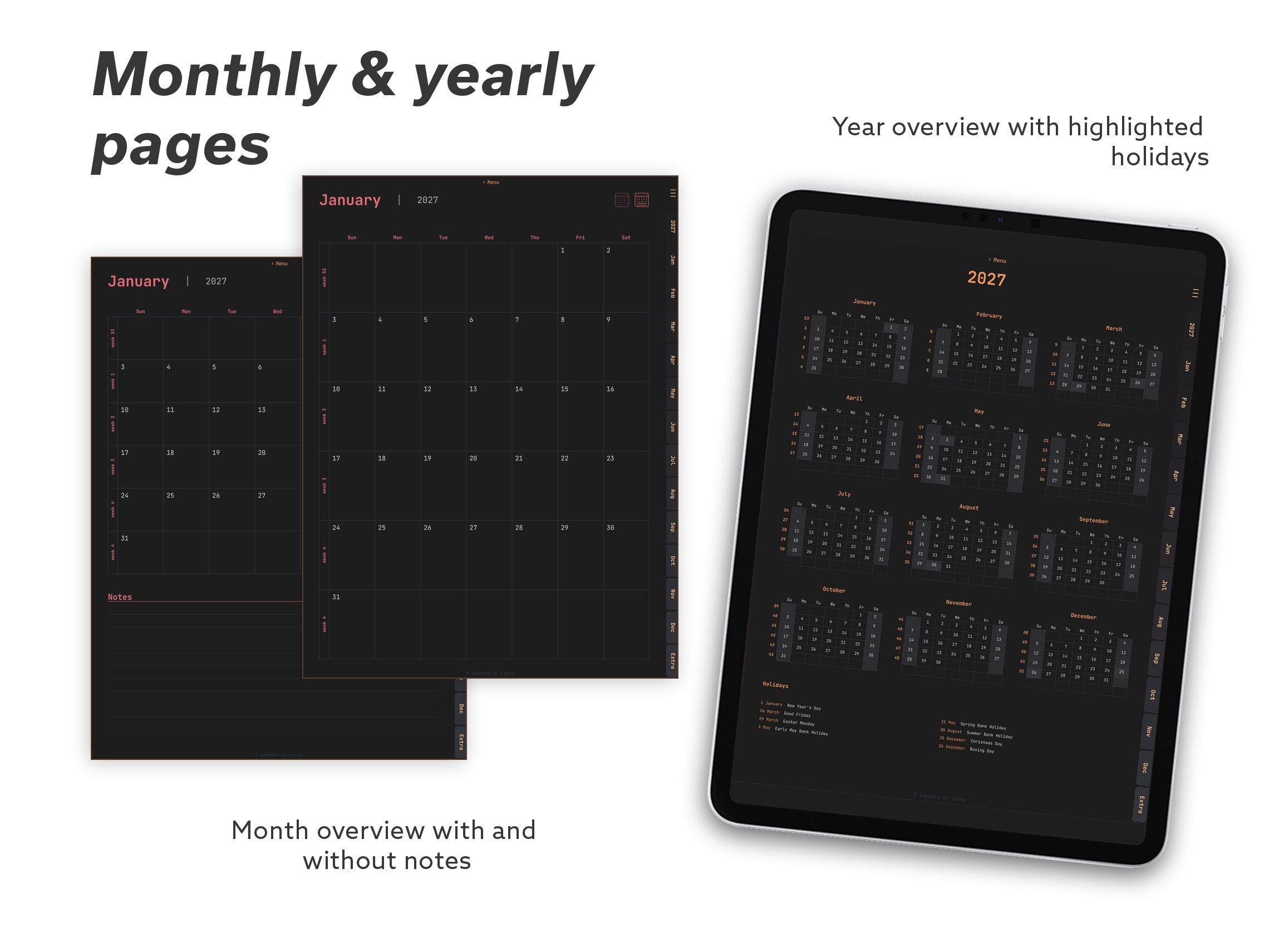 2027 Digital Planner for iPad - Minimalist Dark Essential