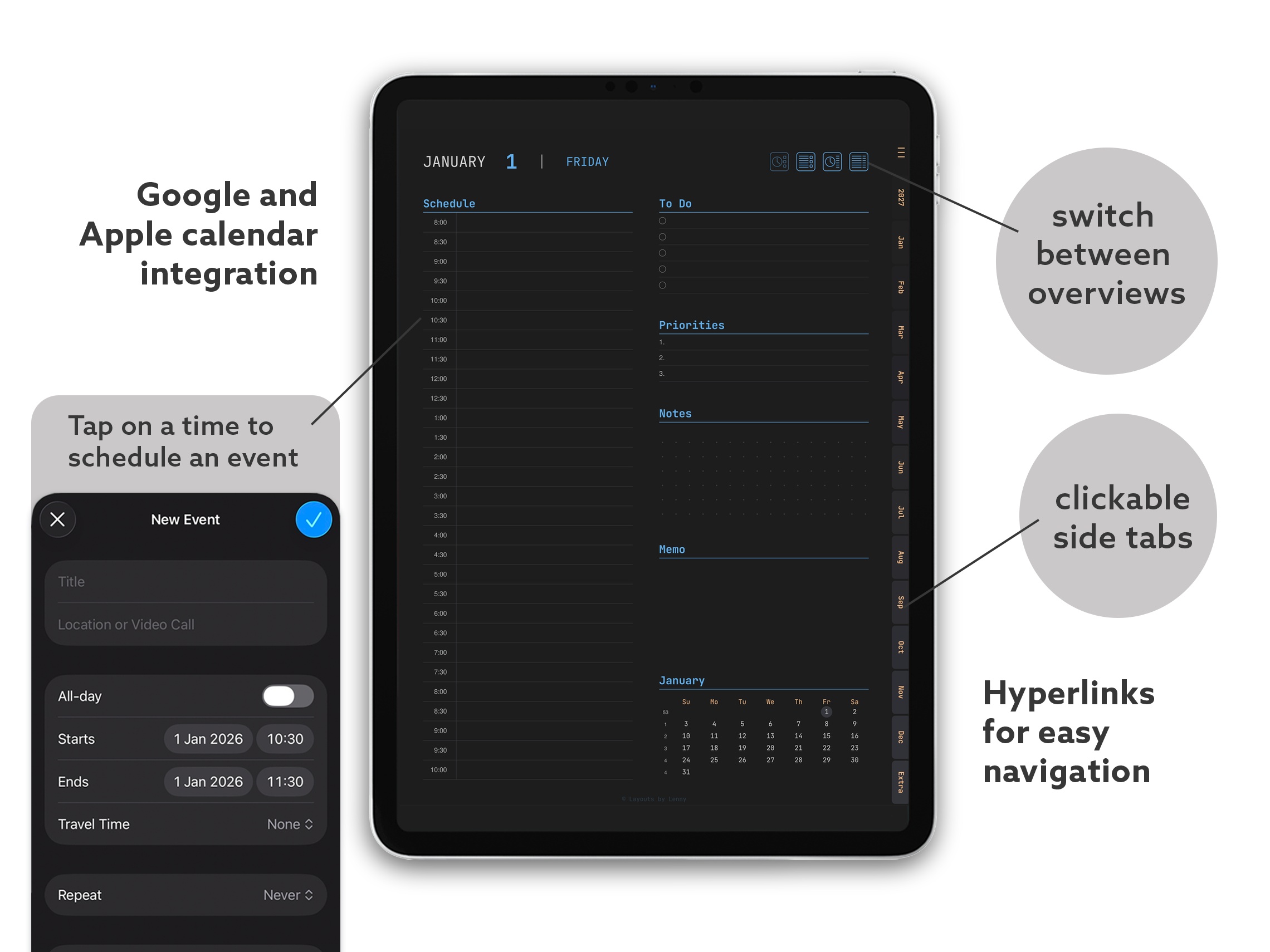 2026 Digital Planner for iPad - Minimalist Dark Terminal