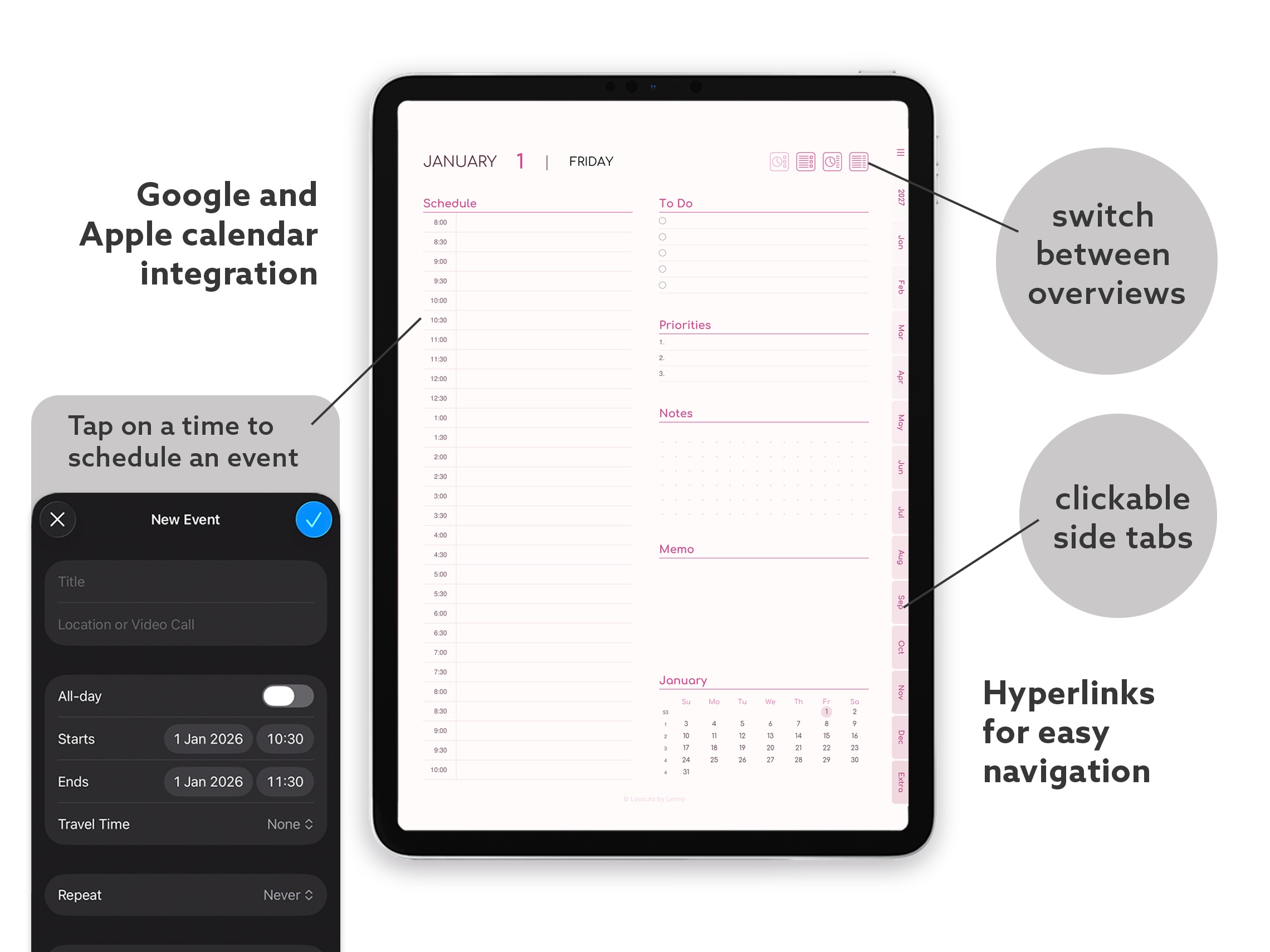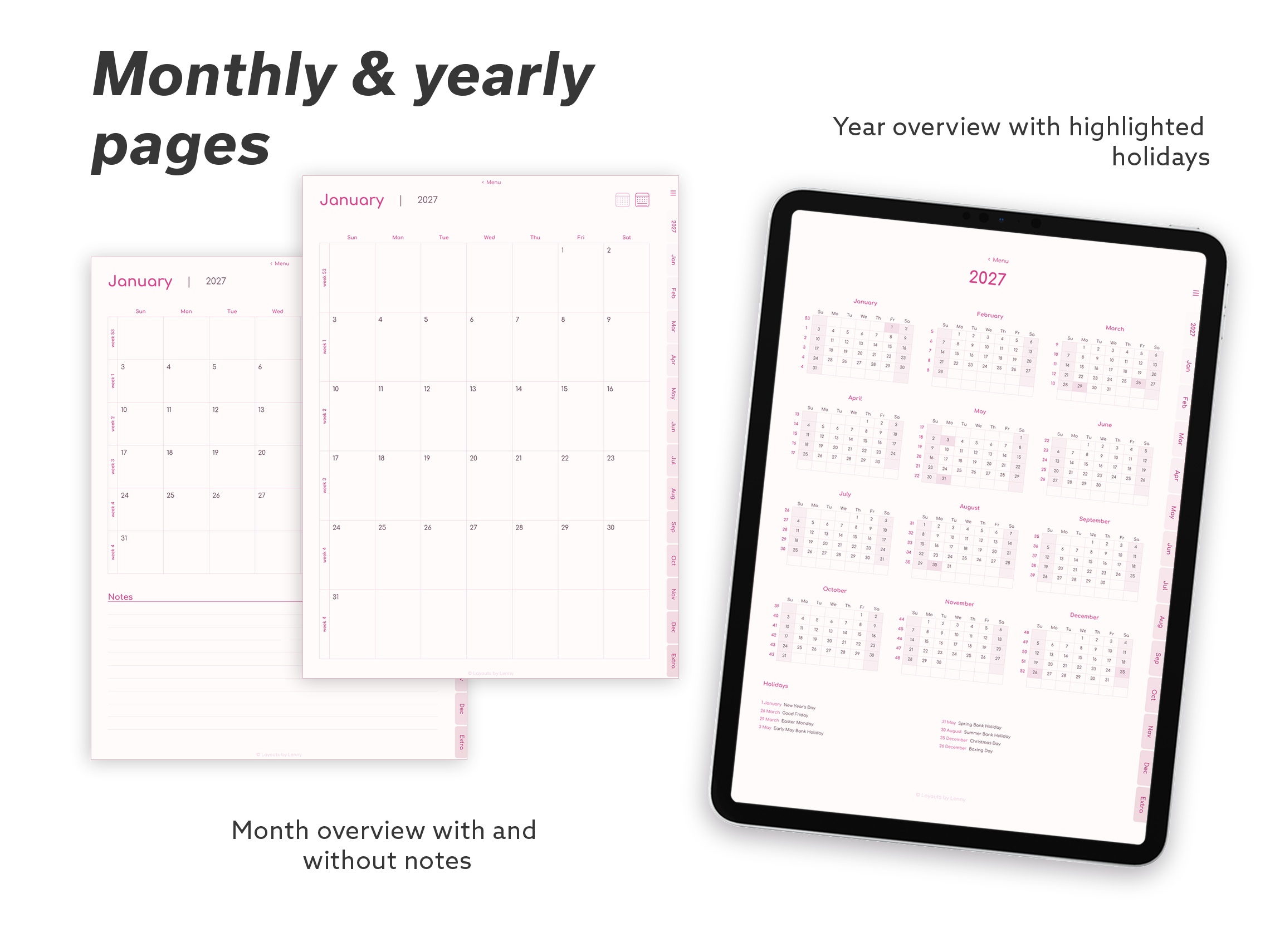 2027 Digital Planner for iPad - Minimalist Pink