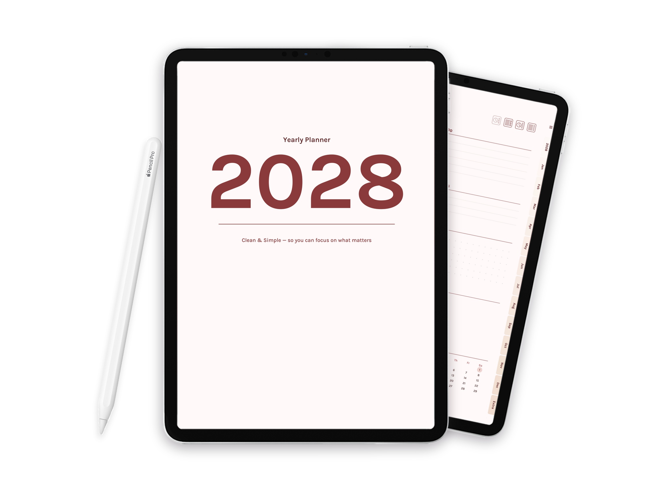 A clean, minimalist 2028 digital planner designed to help you plan with clarity – without the clutter.