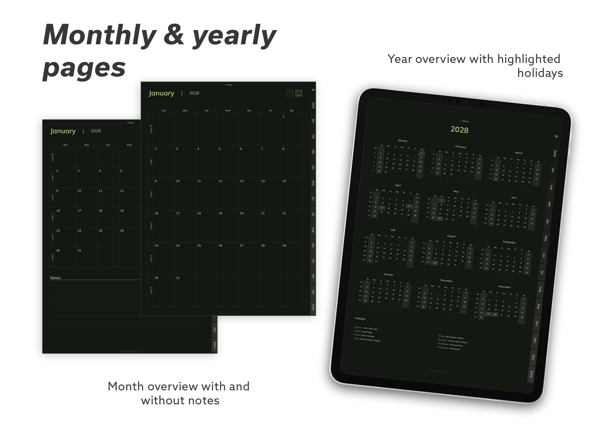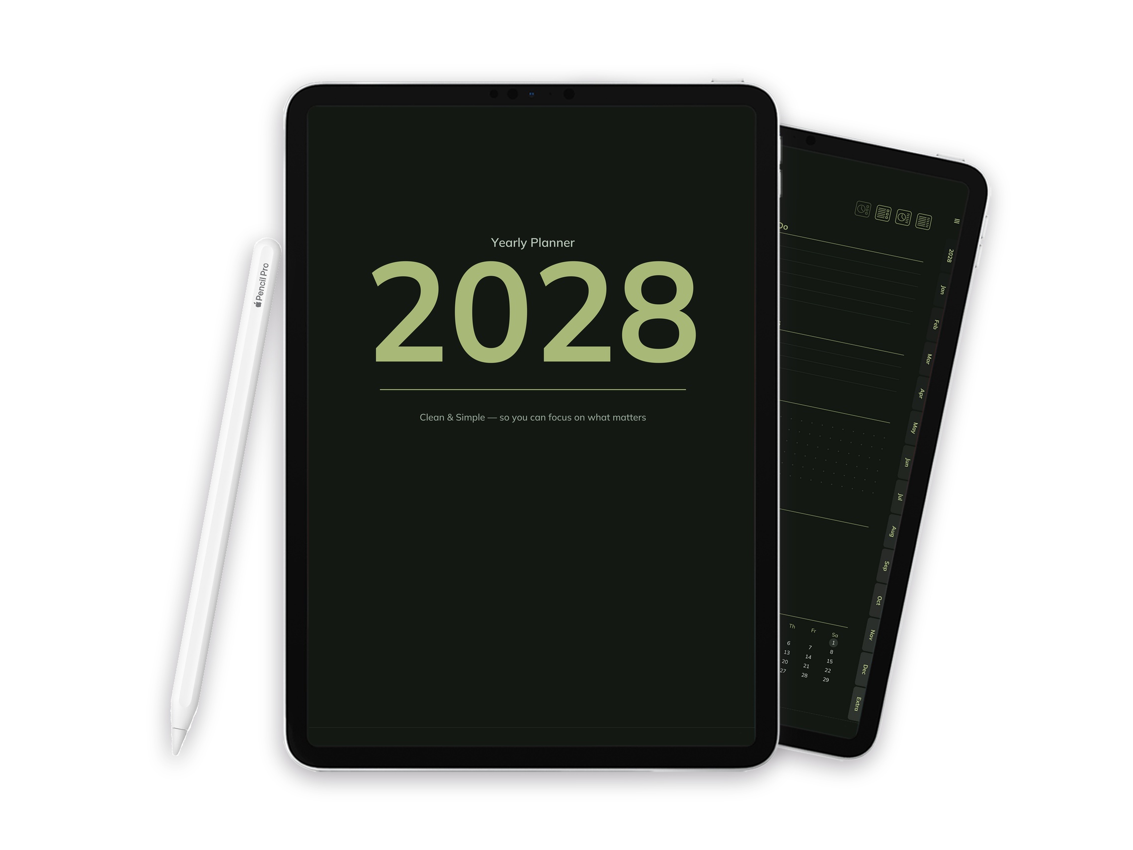 2028 Digital Planner for iPad - Minimalist Dark Olive