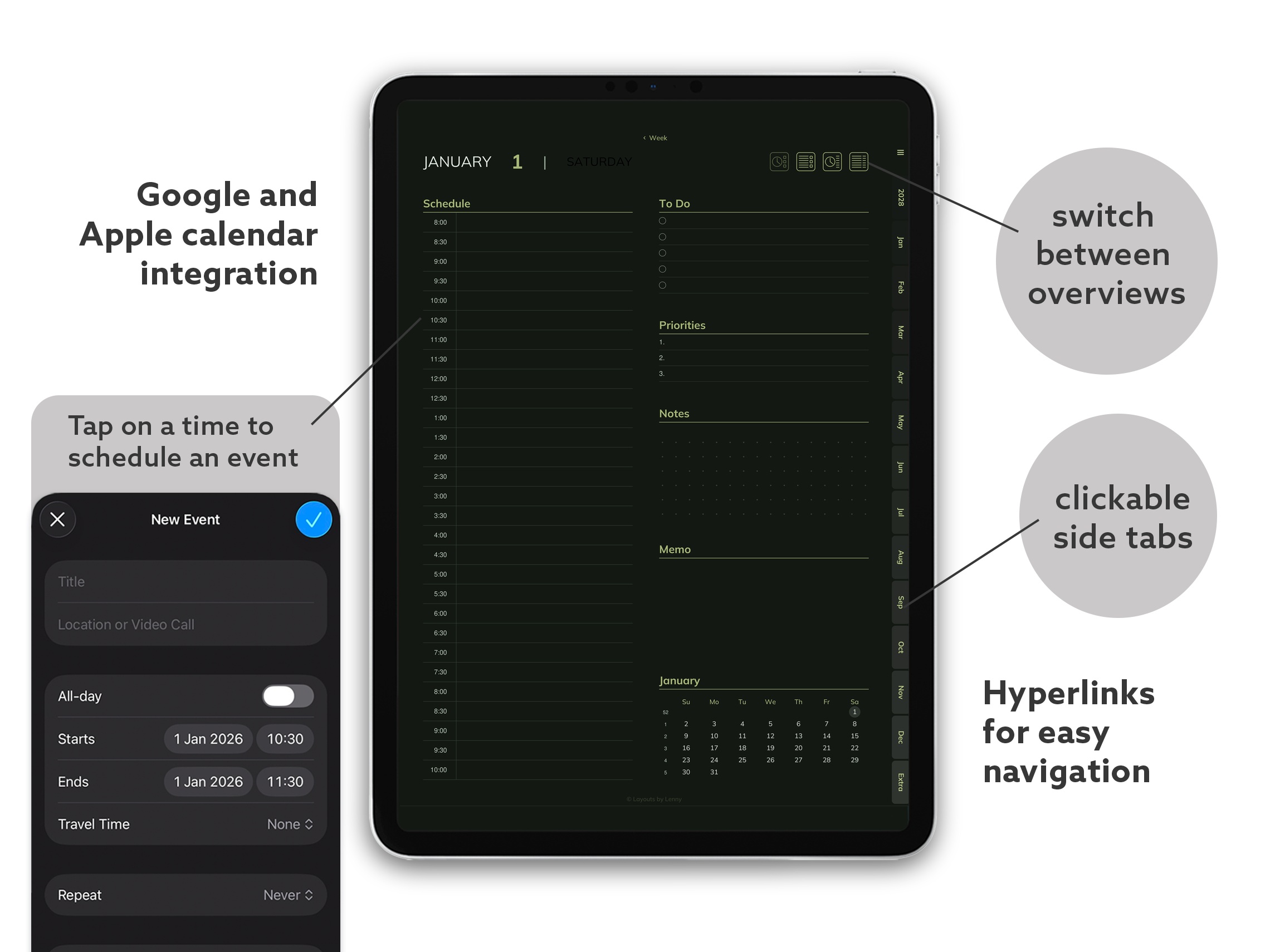 2028 Digital Planner for iPad - Minimalist Dark Essential