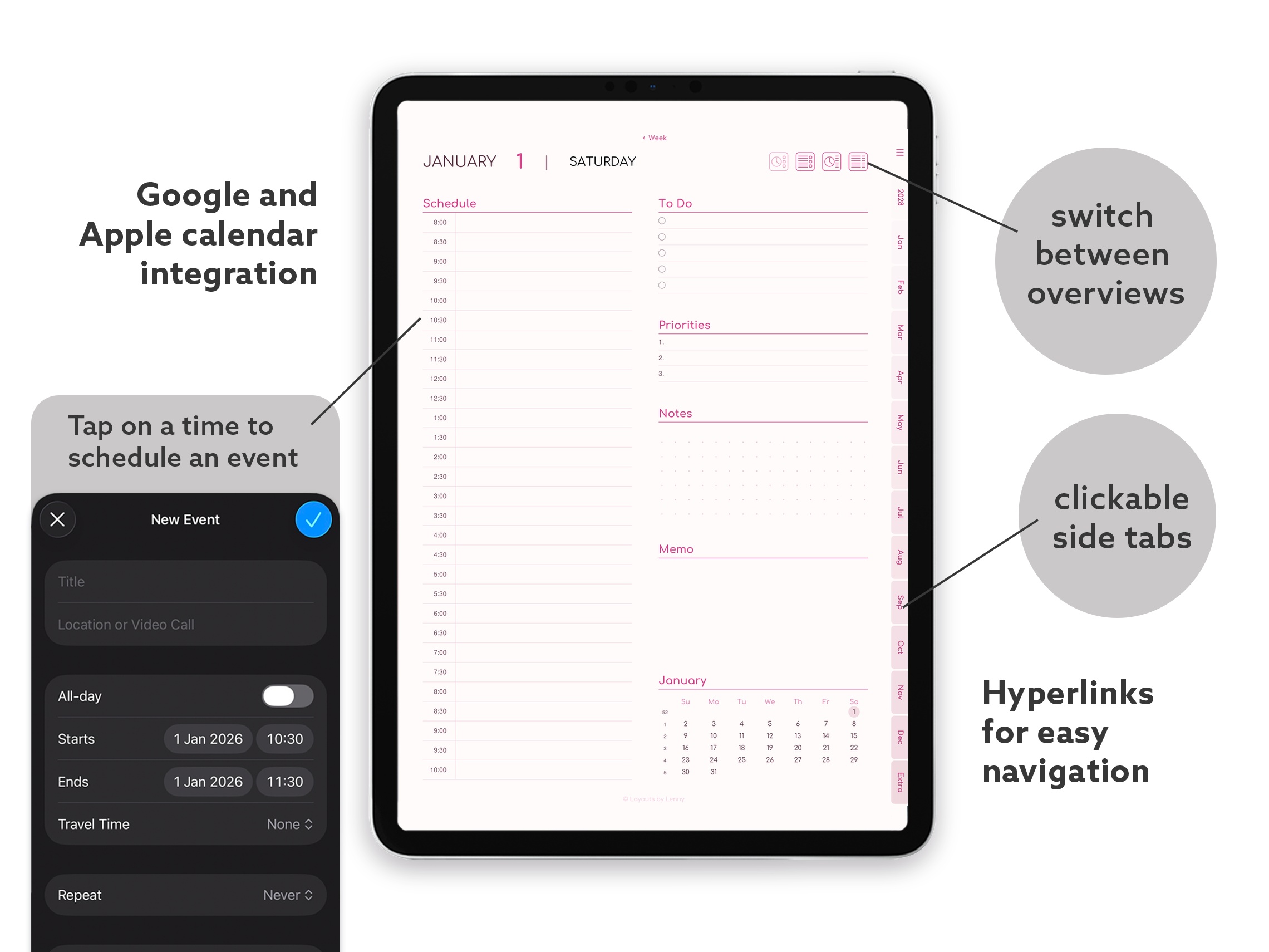 2028 Digital Planner for iPad - Minimalist Pink