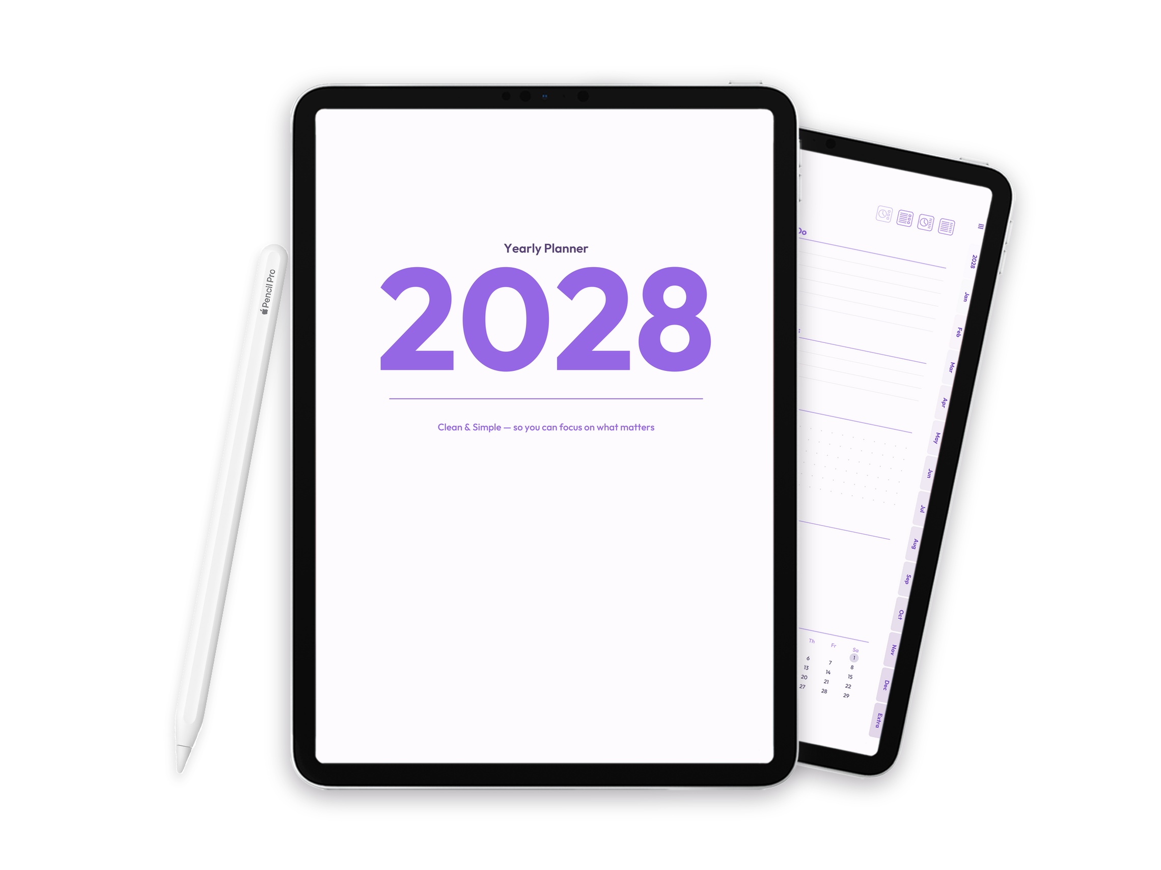 A clean, minimalist 2028 digital planner designed to help you plan with clarity – without the clutter.