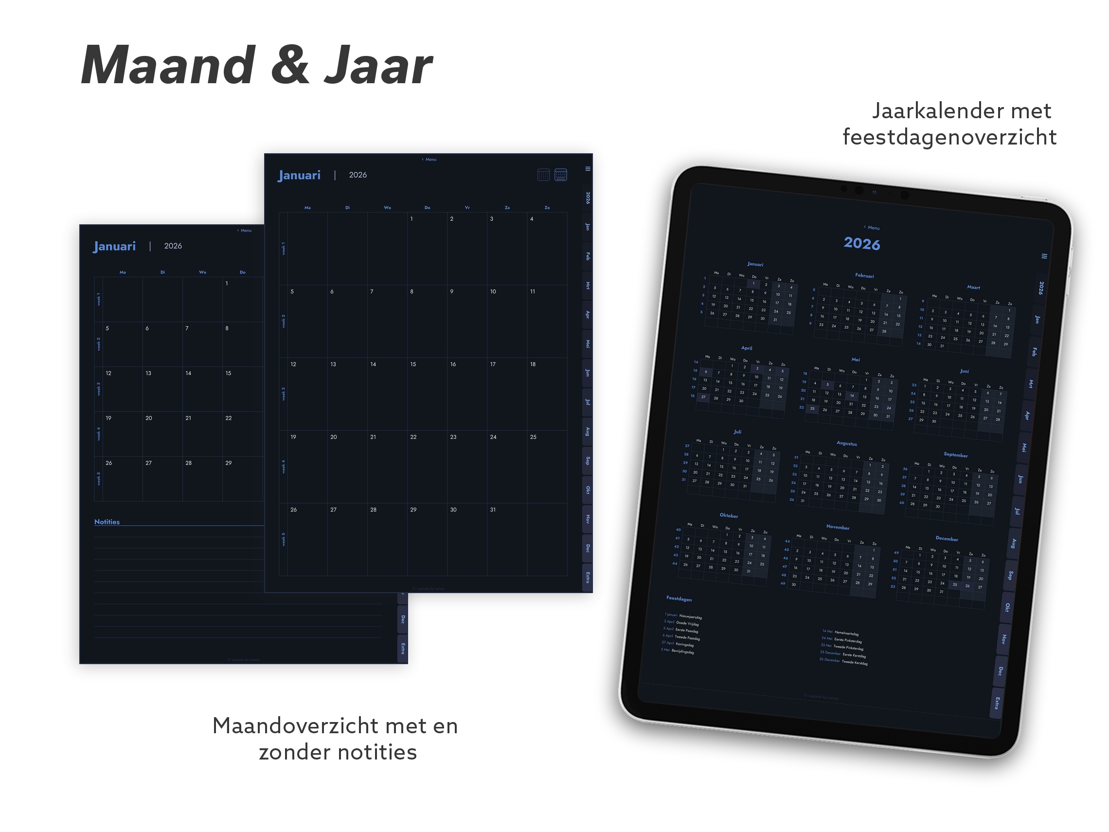 2026 Digitale planner voor iPad - Minimalist Dark Essential