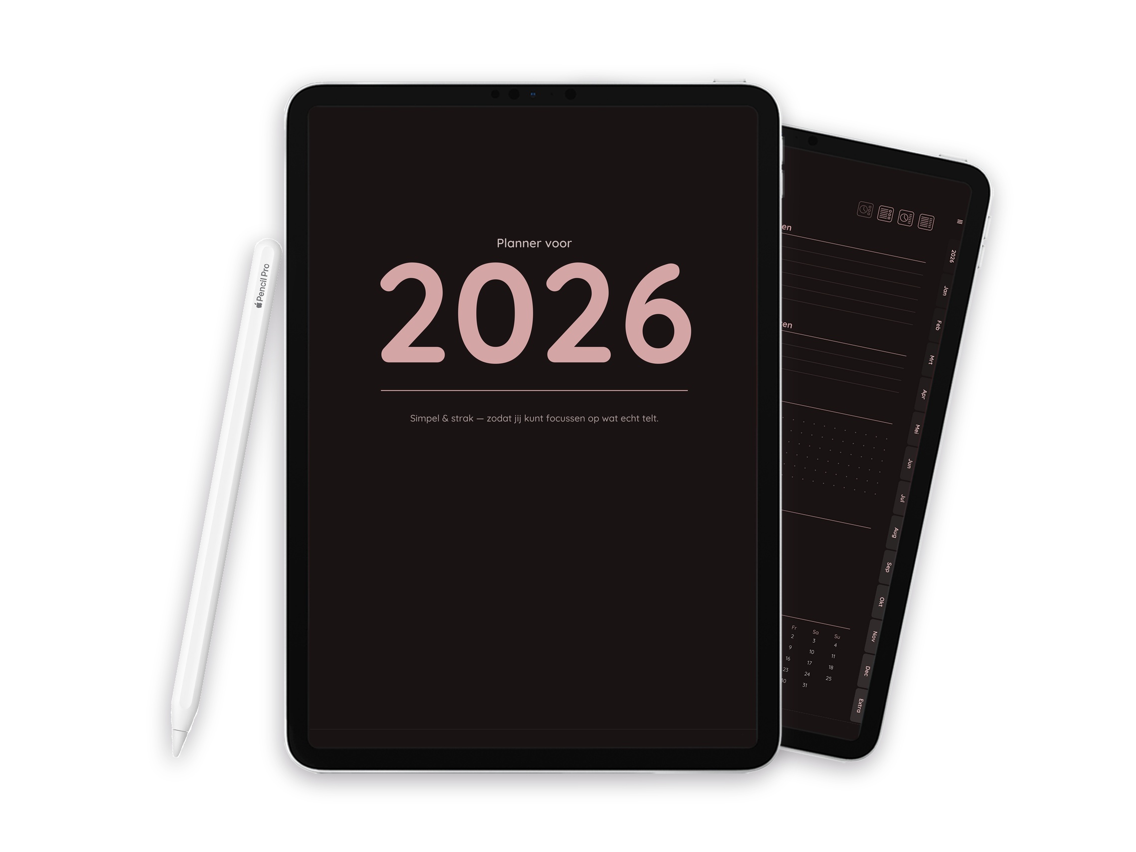 Een strakke, minimalistische digitale planner voor 2026, ontworpen om je te helpen plannen met rust en overzicht — zonder overbodige afleiding.