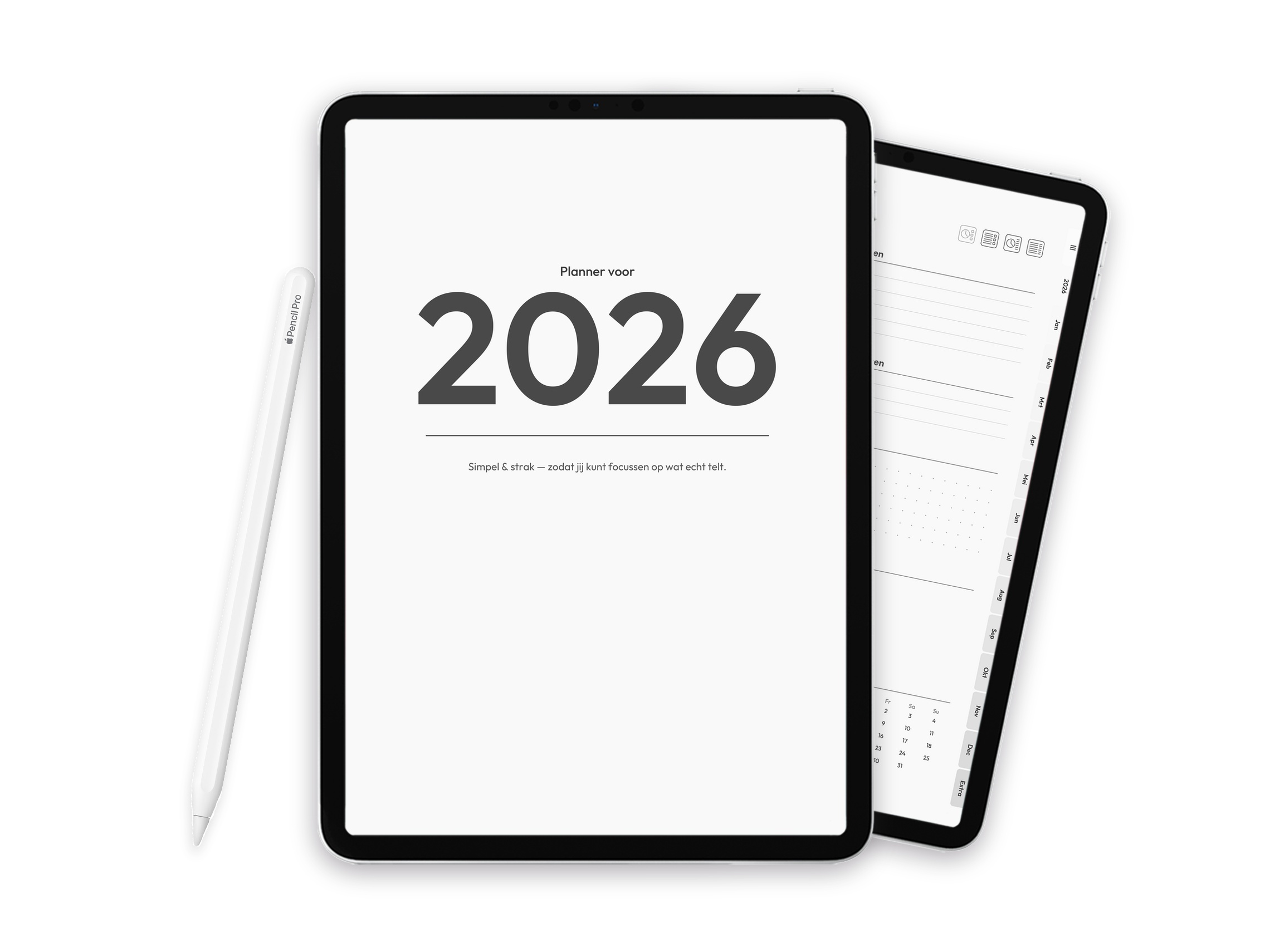 Een strakke, minimalistische digitale planner voor 2026, ontworpen om je te helpen plannen met rust en overzicht — zonder overbodige afleiding.