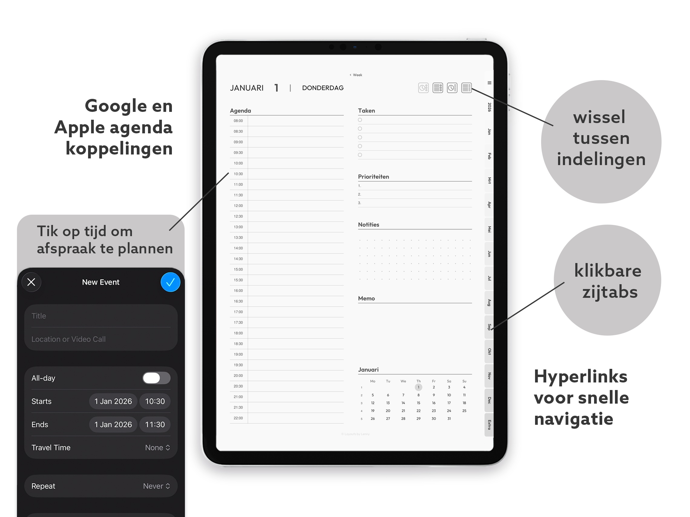 Agendakoppelingen: Google Calendar, Apple Calendar of geen koppeling