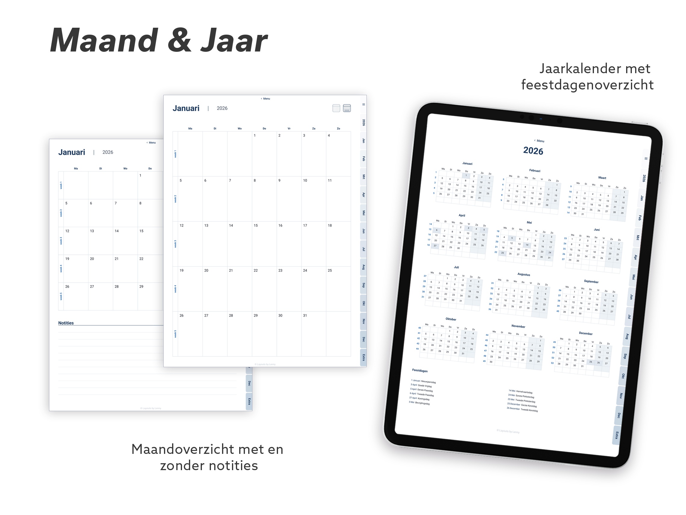 Een strakke, minimalistische digitale planner voor 2026, ontworpen om je te helpen plannen met rust en overzicht — zonder overbodige afleiding.