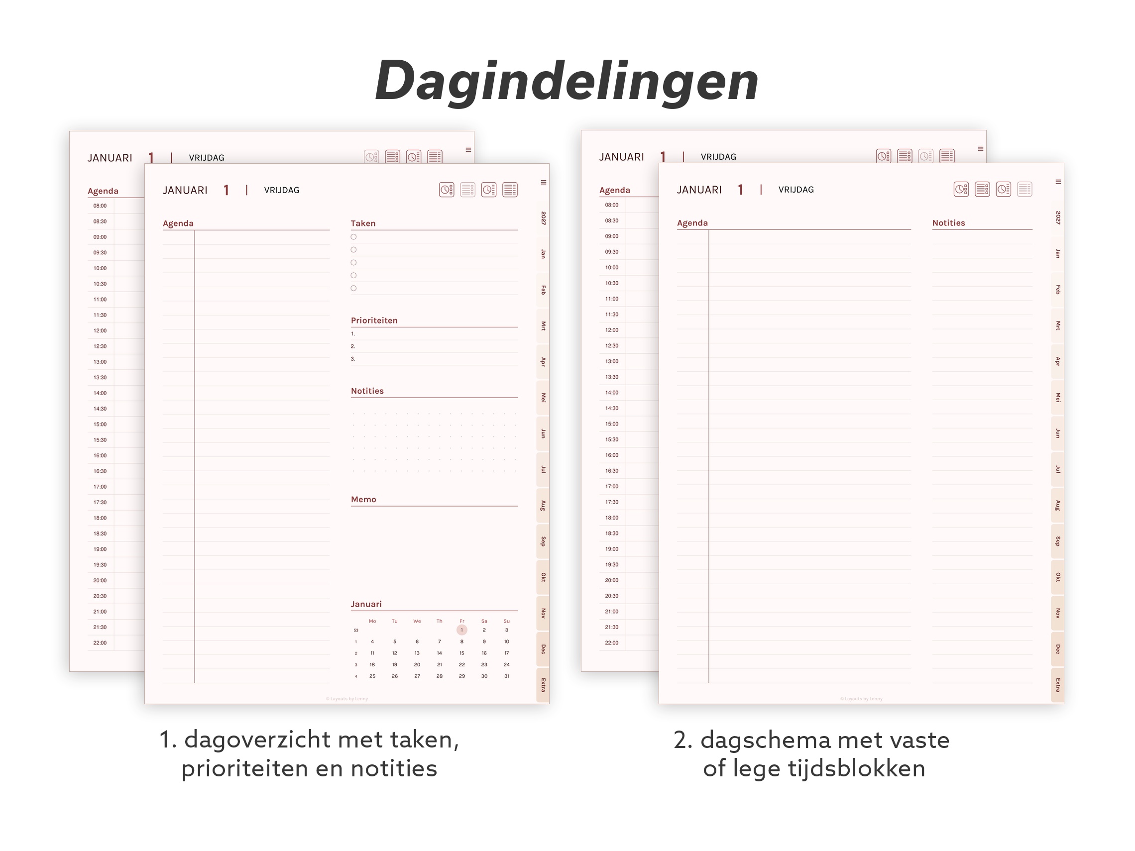 Doordacht ontworpen templates die zich aanpassen aan hoe jij écht werkt en leeft. Geen ingewikkelde layouts of drukke designs. Alleen eenvoudige, functionele pagina’s die je ruimte geven om te denken, plannen en focussen op wat echt belangrijk is.