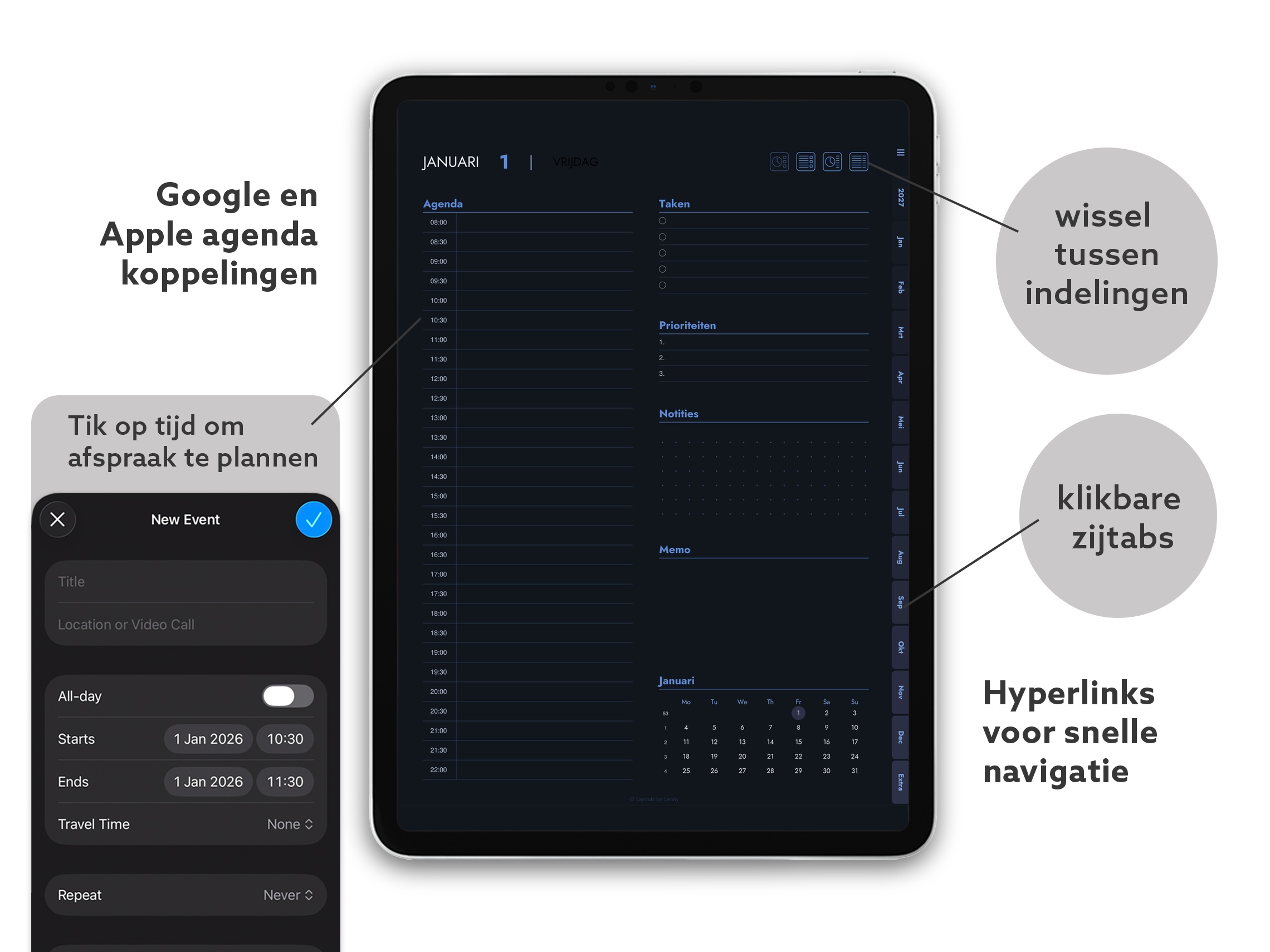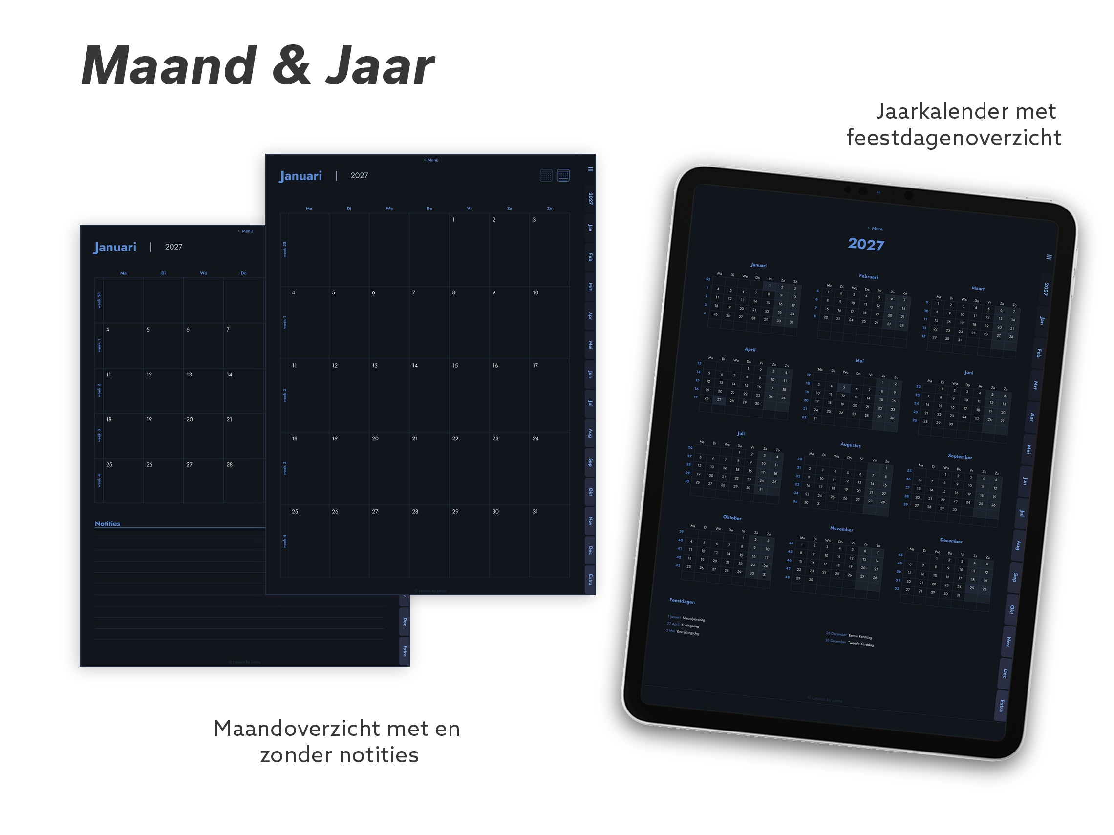2027 Digitale planner voor iPad - Minimalist Dark Essential