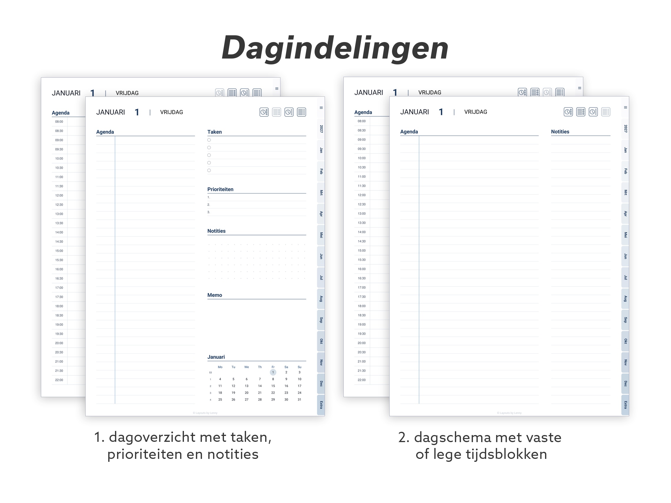 Een strakke, minimalistische digitale planner voor 2027, ontworpen om je te helpen plannen met rust en overzicht — zonder overbodige afleiding.