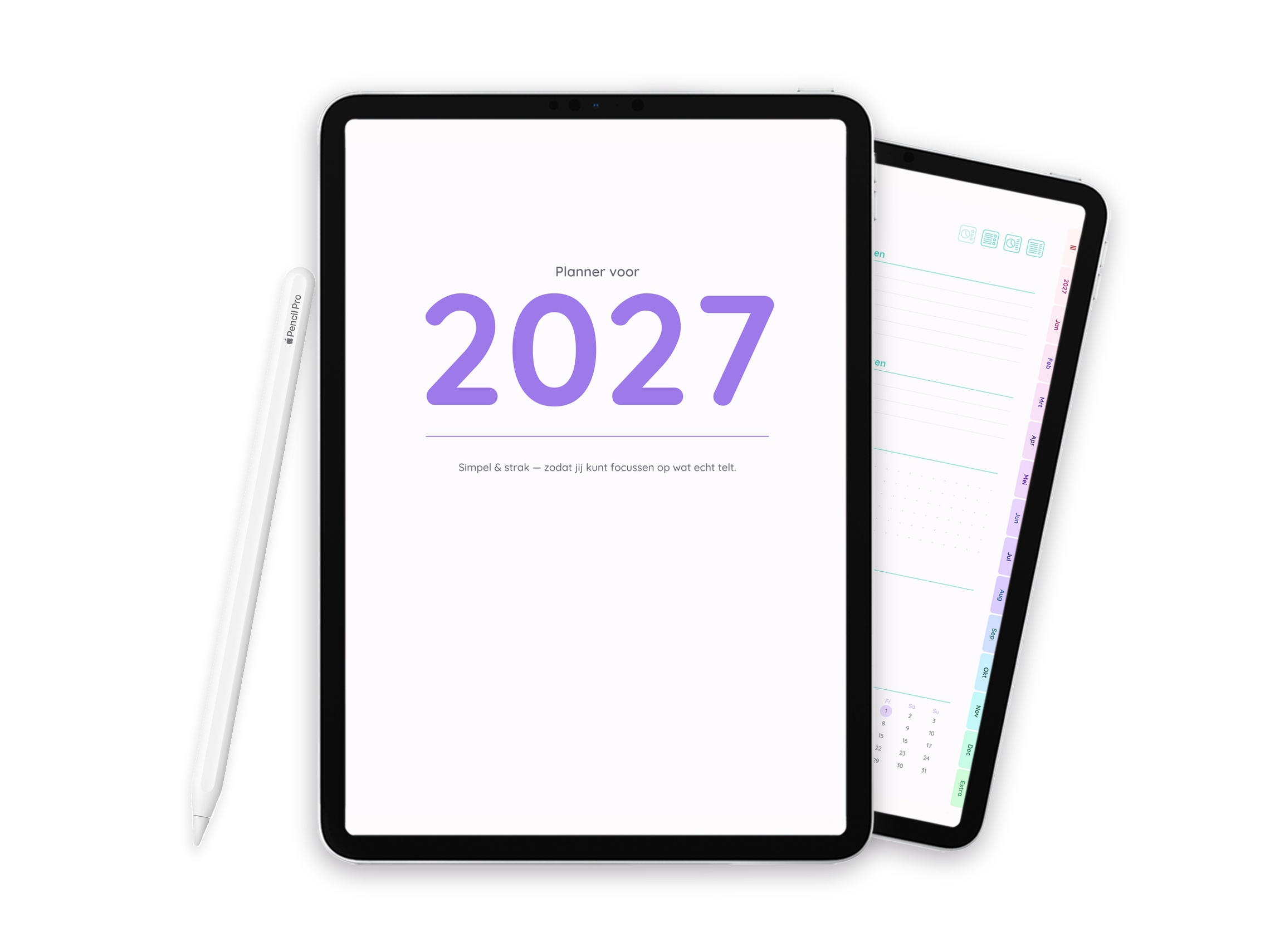 Een strakke, minimalistische digitale planner voor 2027, ontworpen om je te helpen plannen met rust en overzicht — zonder overbodige afleiding.