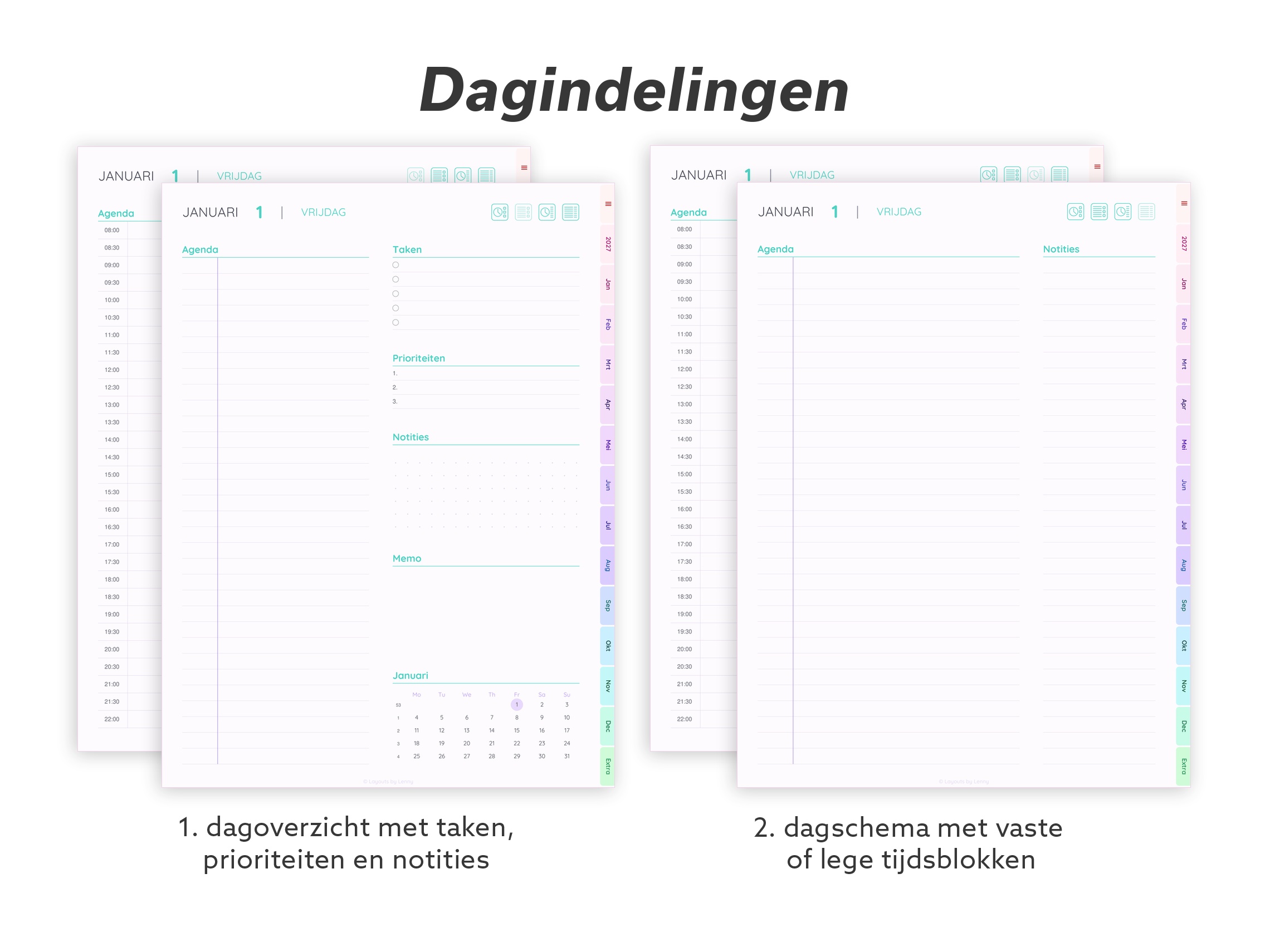Doordacht ontworpen templates die zich aanpassen aan hoe jij écht werkt en leeft. Geen ingewikkelde layouts of drukke designs. Alleen eenvoudige, functionele pagina’s die je ruimte geven om te denken, plannen en focussen op wat echt belangrijk is.