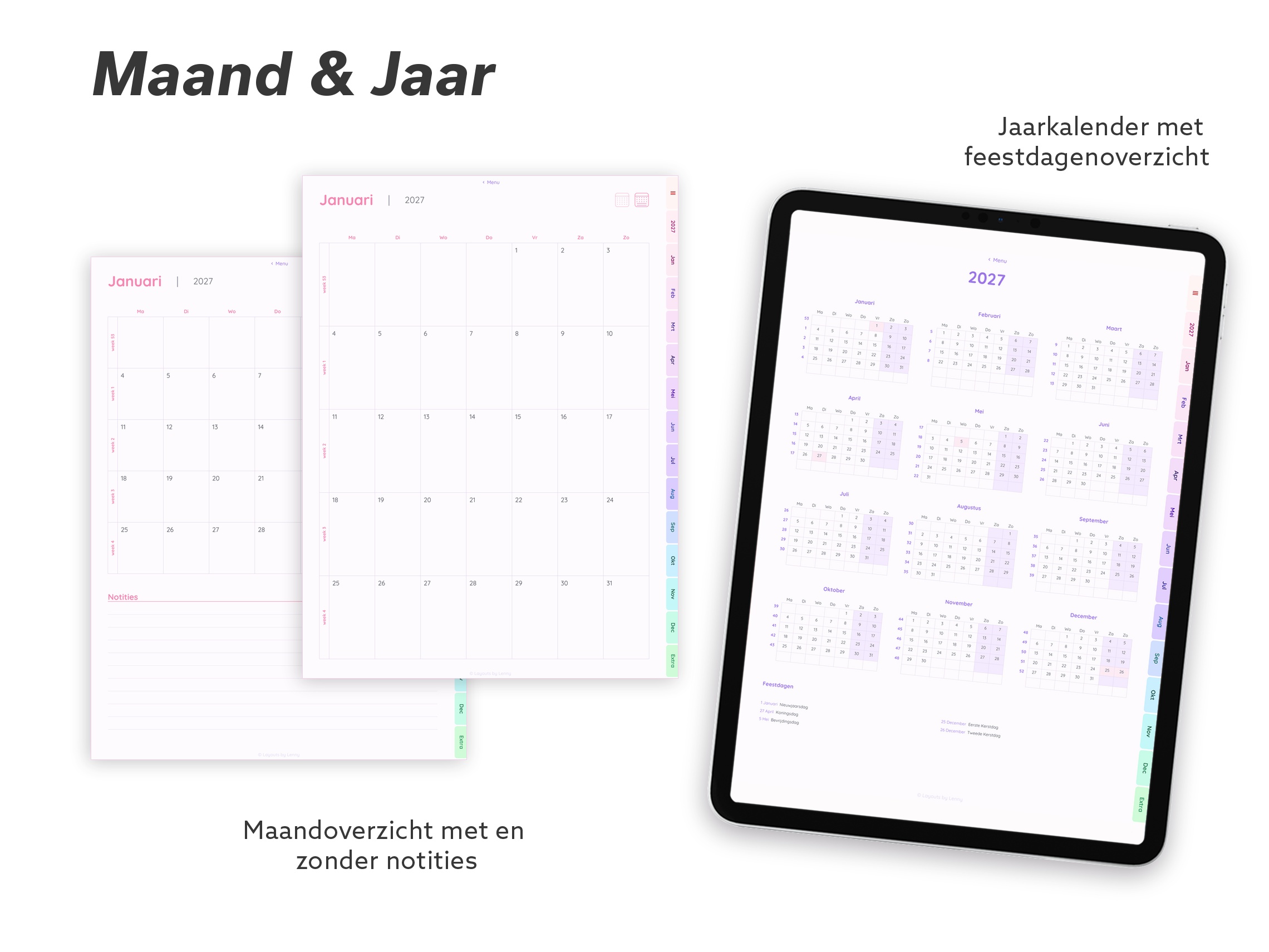 2027 Digitale planner voor iPad - Minimalist Soft Pastel
