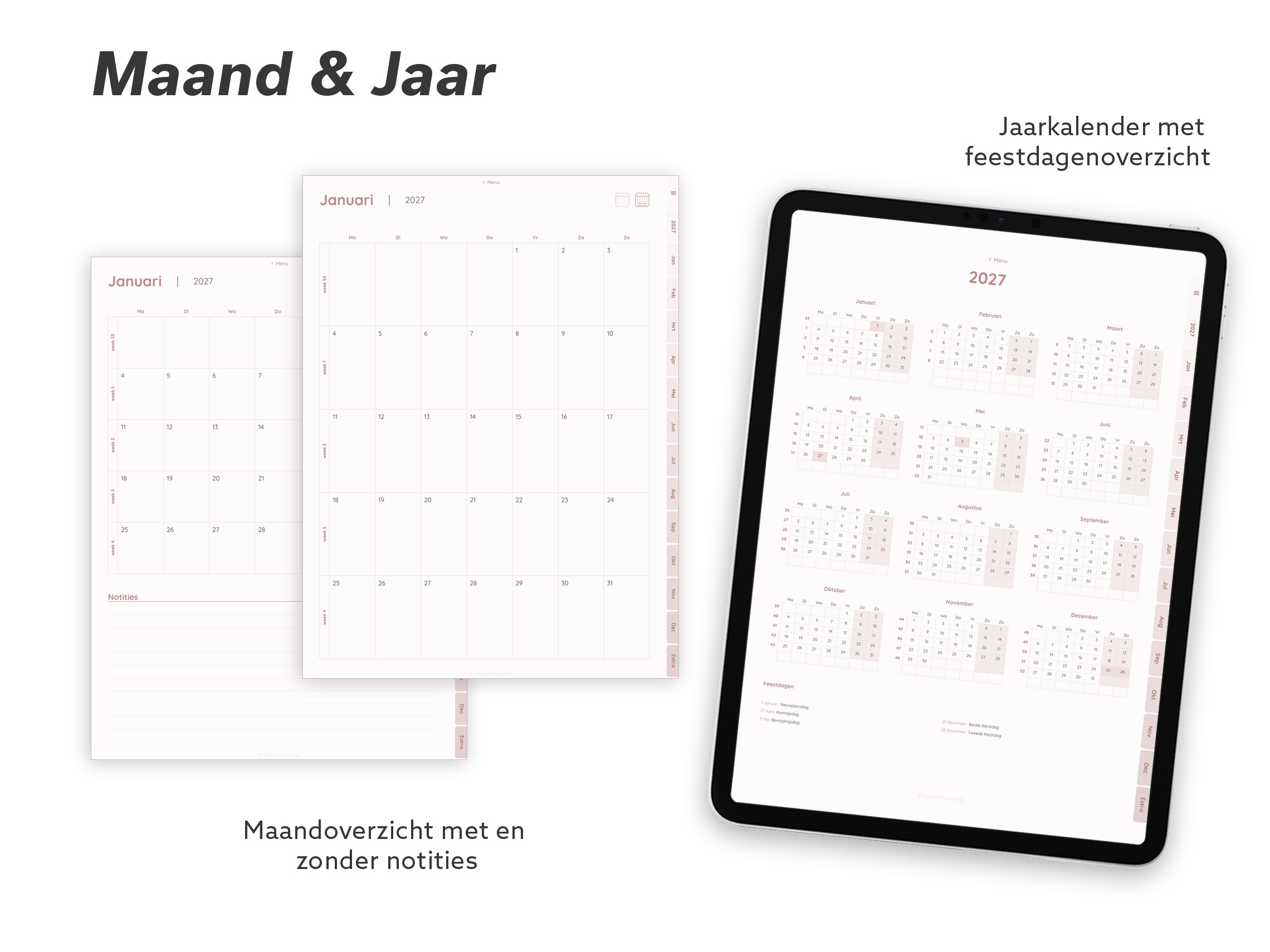 Een strakke, minimalistische digitale planner voor 2027, ontworpen om je te helpen plannen met rust en overzicht — zonder overbodige afleiding.
